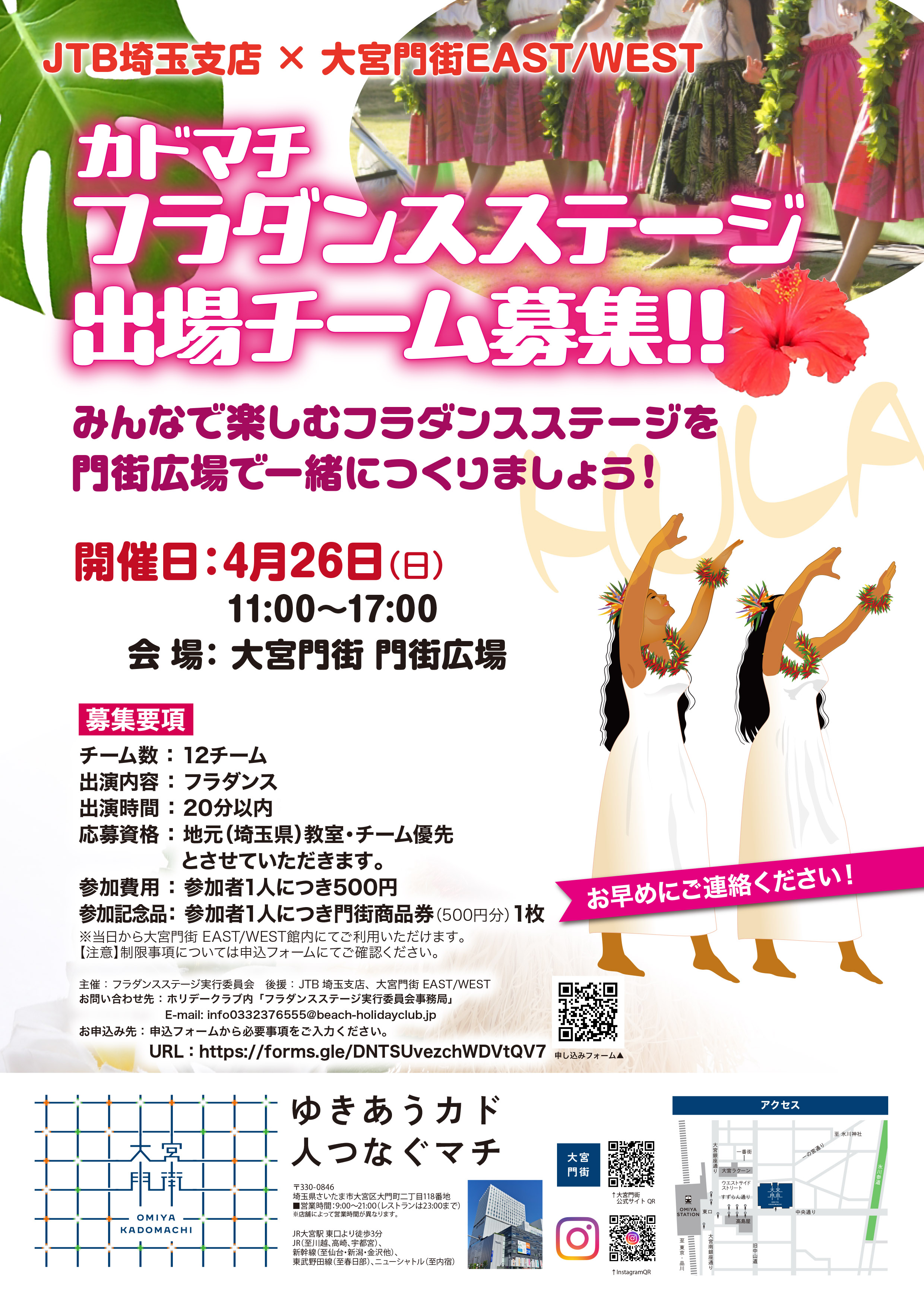 【門街広場】カドマチフラダンスステージ 出場チーム募集のお知らせ