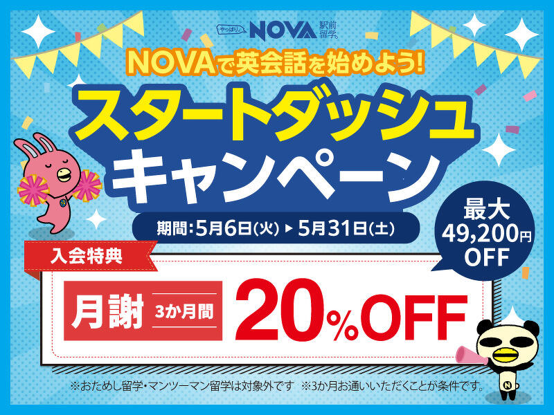 【EAST 2階 NOVA】NOVAでお得に英会話を始めよう!スタートダッシュキャンペーン実施中☆彡