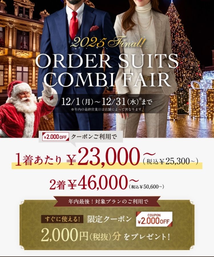 【WEST 2F グローバルスタイル】1着あたり2万円台~!年内最後のコンビフェア開催中!