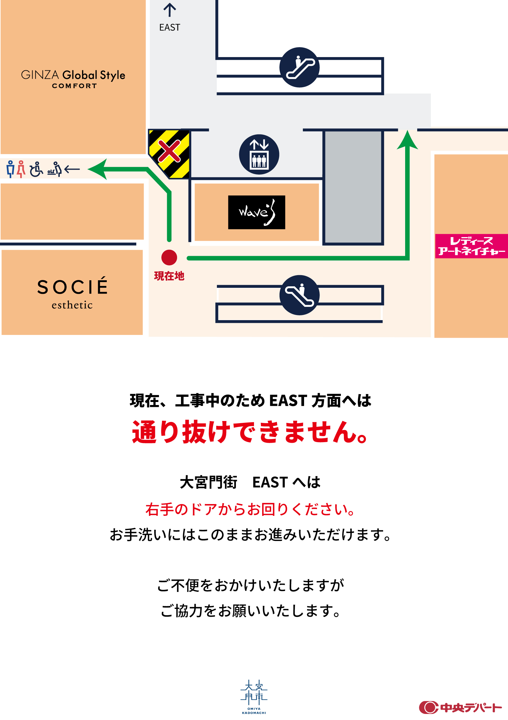 現在大宮門街では、WEST 2階グローバルスタイル側出入口にて、内部工事を実施しております。